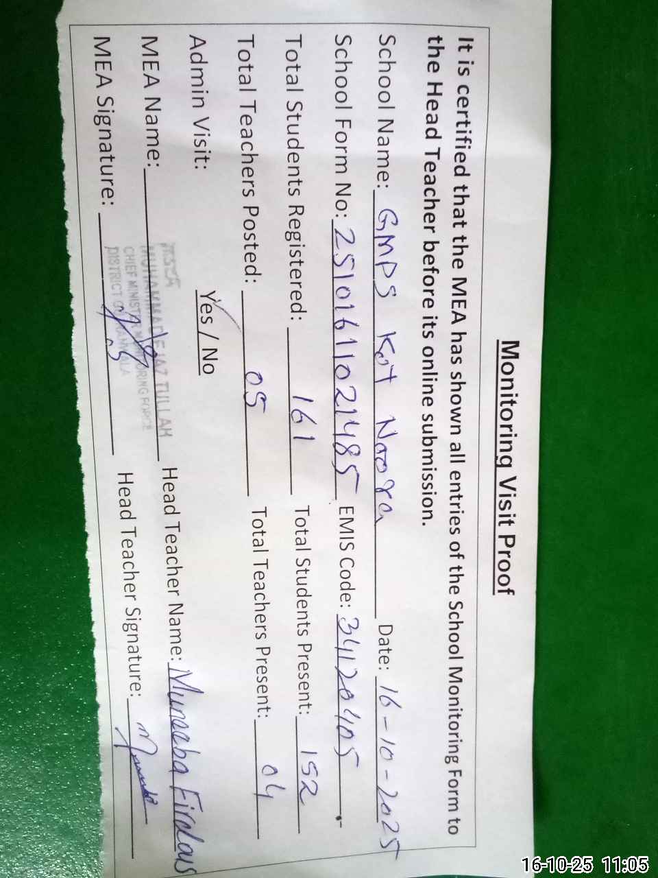 | EMIS Code: 34120405 | Name of School: GMPS KOT NOORA | |||