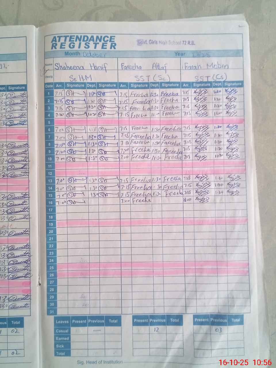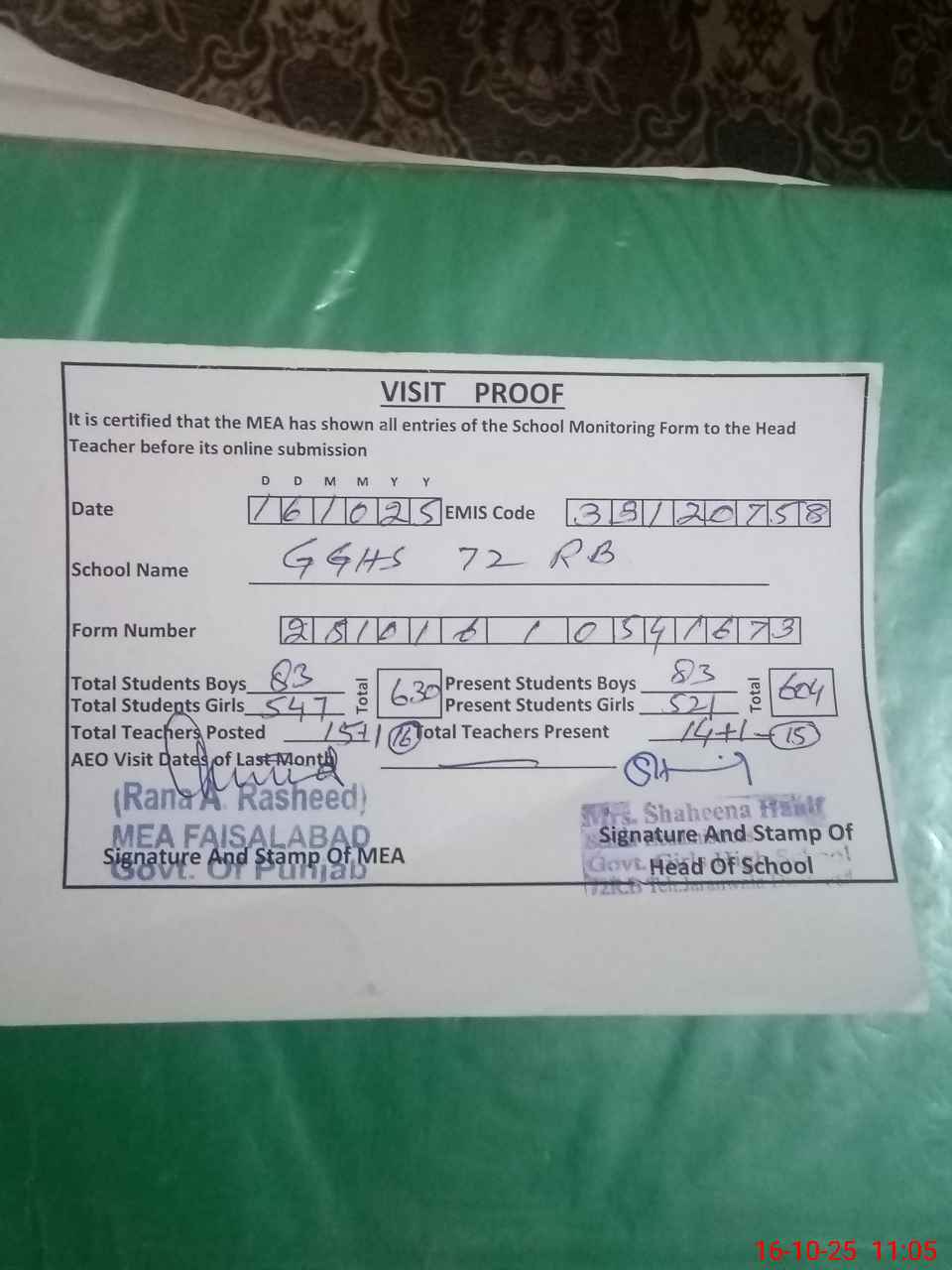 | EMIS Code: 33120758 | Name of School: GGHS CHAK 72 RB | |||