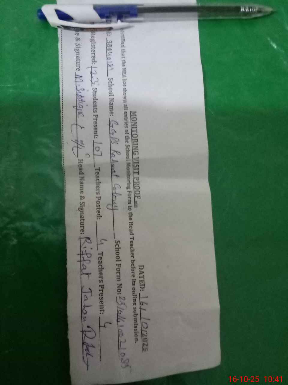 | EMIS Code: 38440181 | Name of School: GGPS RAHMAT COLONY SILLANWALI | |||