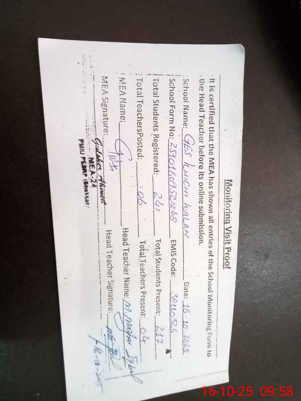 | EMIS Code: 38110326 | Name of School: GES KHICHI KALAN | |||