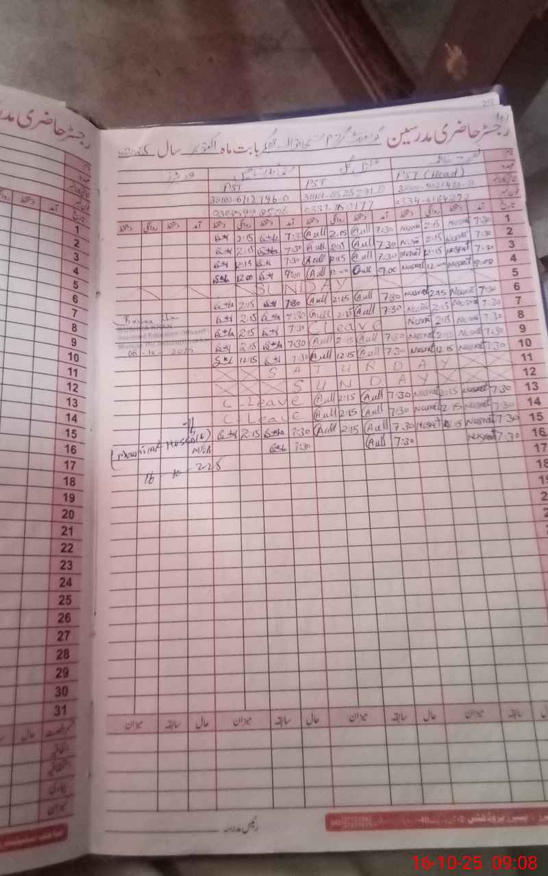 | Name: Za**** Ba**** Designation: (School Headmaster's/Headmistress's) PTC/JV Phone/Cell Number: 03**** |