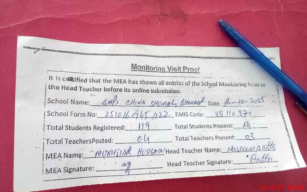 | EMIS Code: 38110371 | Name of School: GMPS CHINA SHUMALI BHAKKAR | |||