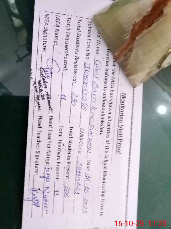 | Certified that this School was Inspected by the Undersigned MEA/DMO Today and the Information Stated Above is as Per Record. | |||||
