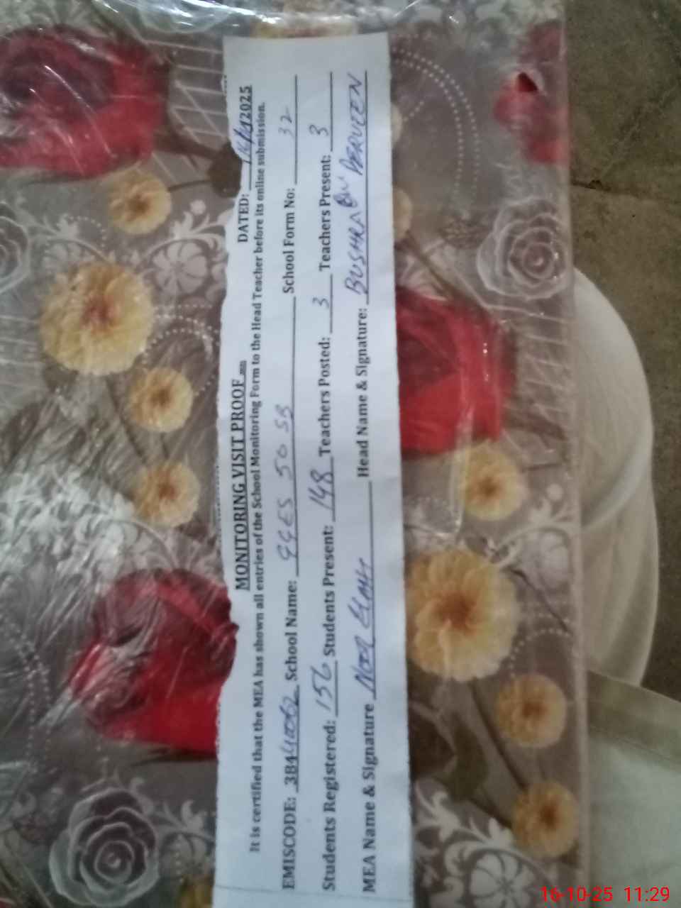 | Certified that this School was Inspected by the Undersigned MEA/DMO Today and the Information Stated Above is as Per Record. | |||||