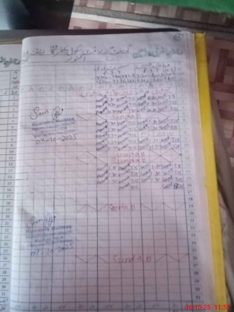 | Monitoring Date: 16-10-2025 | Start Time: 16-10-2025 11:42 AM | End Time: 16-10-2025 11:57 AM | Name of MEA: Mu**** Sa**** Ul**** Sa**** | |