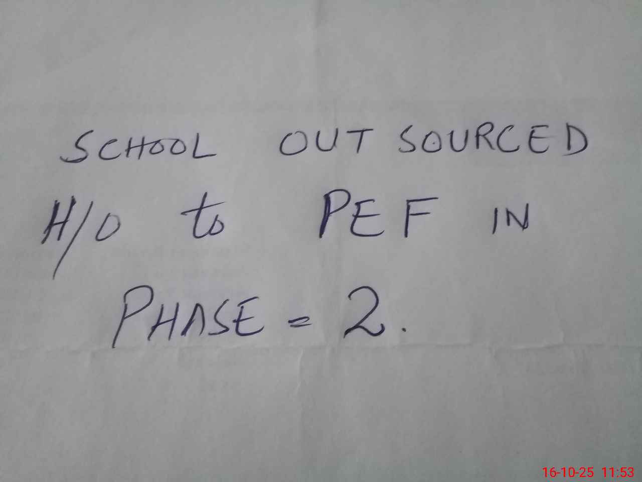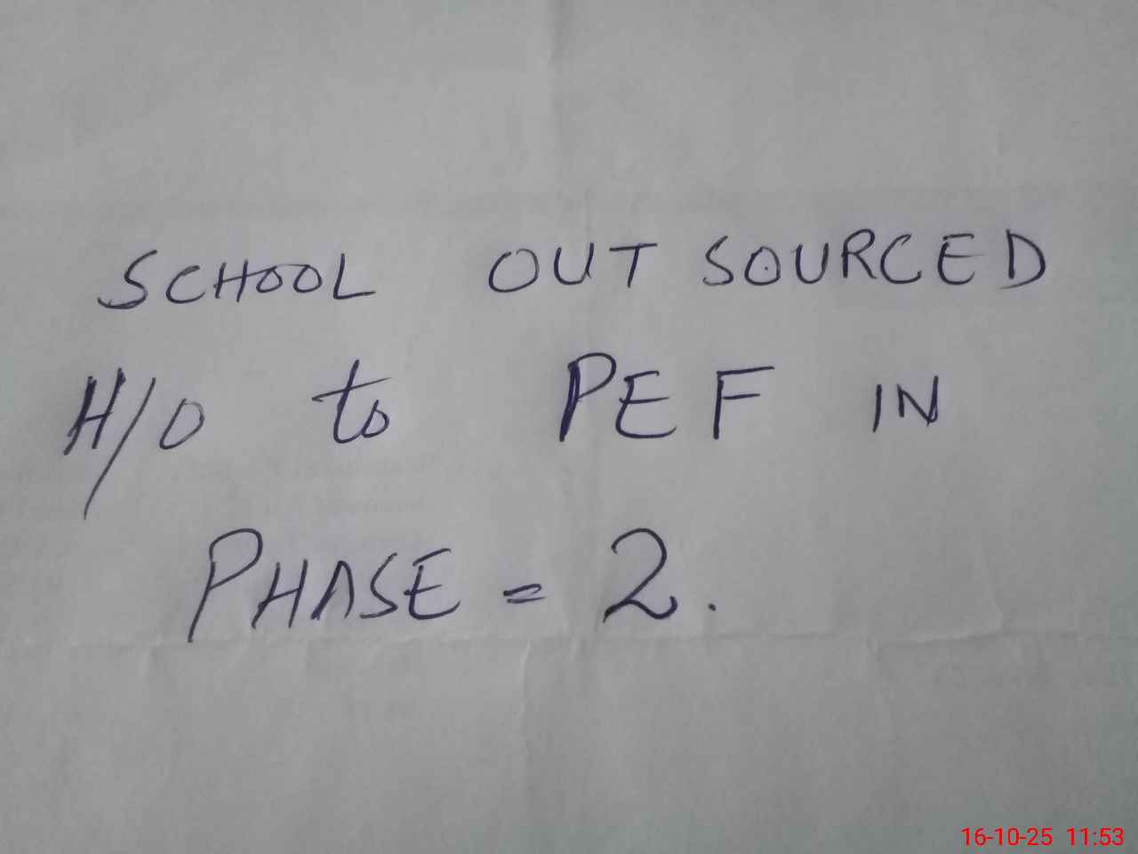 | Remarks (Use Separate Page if Required): School outsourced and handed over to PEF | |||||