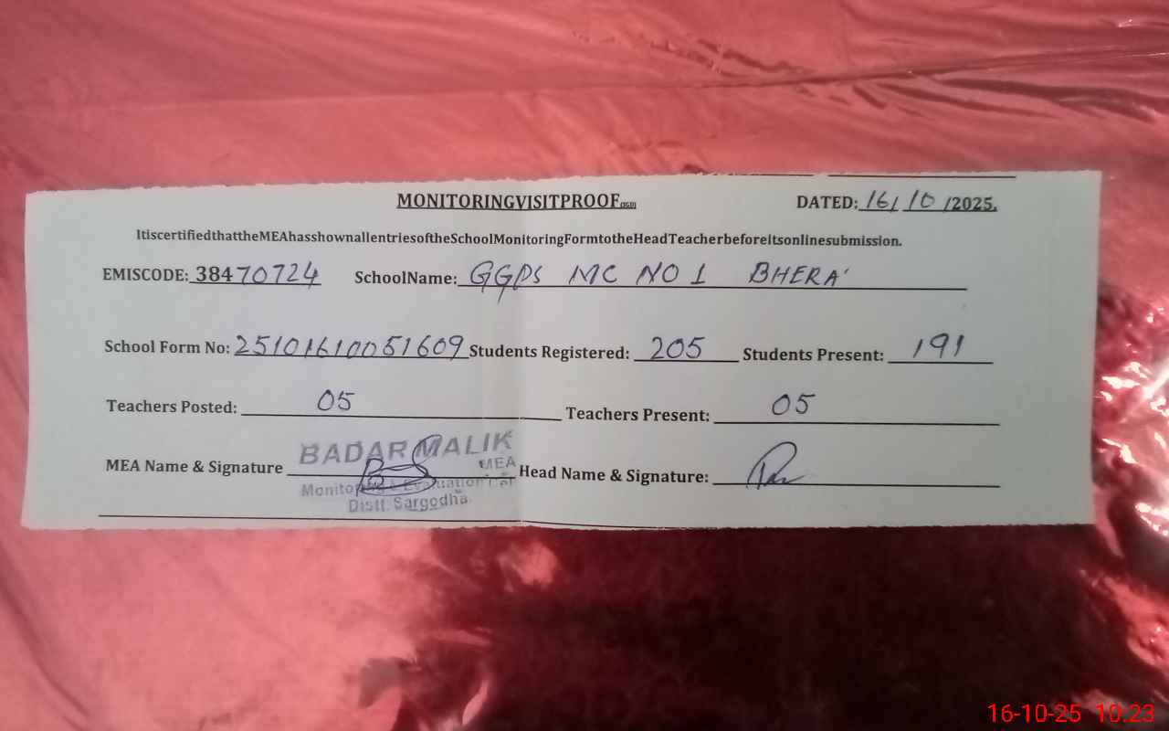 | EMIS Code: 38470724 | Name of School: GGPS MC NO.1 BHERA | |||