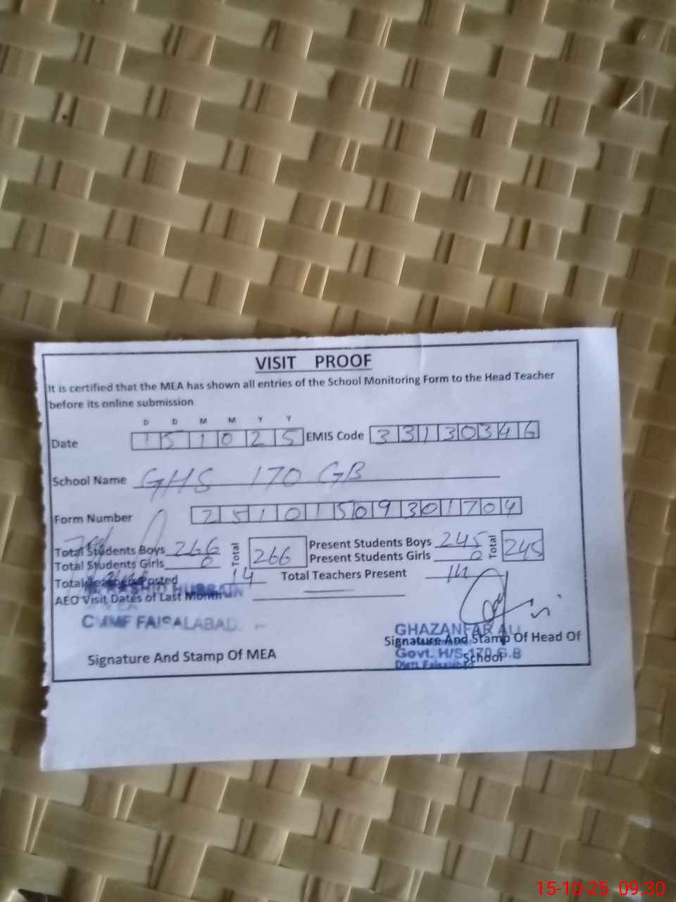 | EMIS Code: 33130346 | Name of School: GHS CHAK 170 GB SAMUNDRI FSD | |||