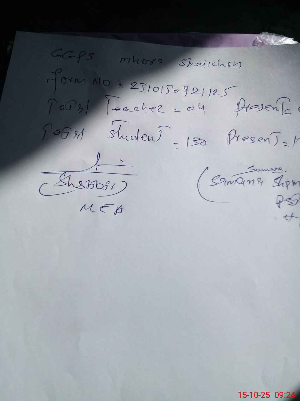 | Monitoring Date: 15-10-2025 | Start Time: 15-10-2025 09:10 AM | End Time: 15-10-2025 09:28 AM | Name of MEA: Sh**** Hu**** | |
