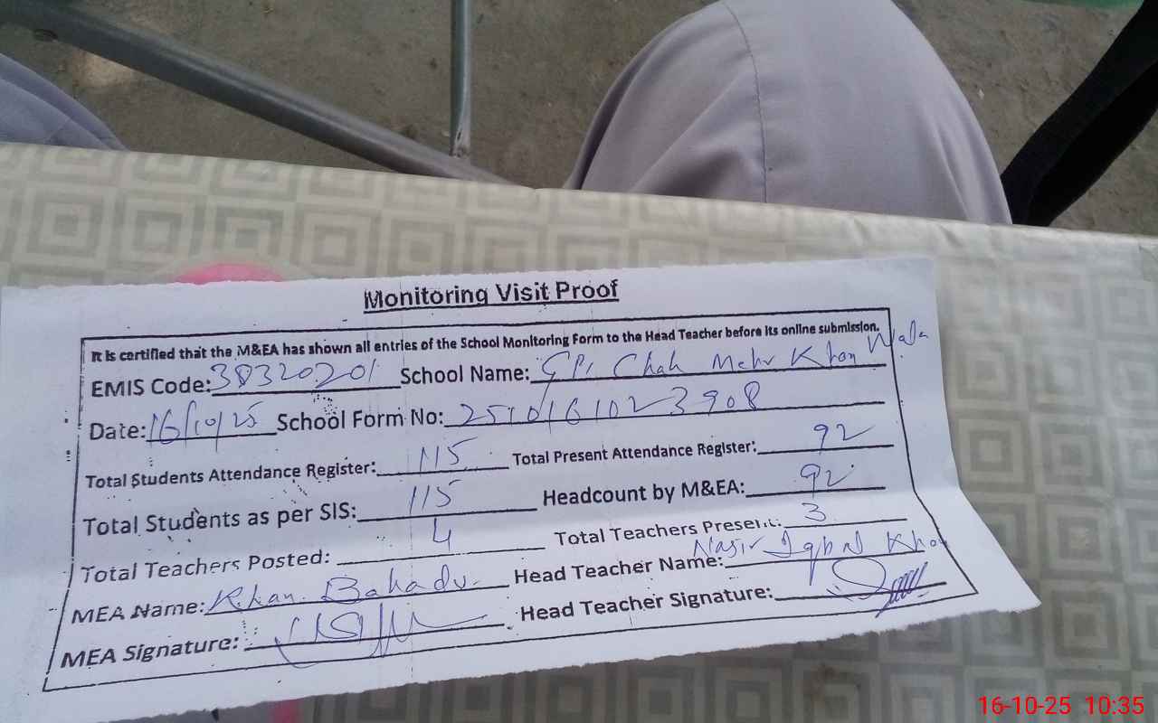 | EMIS Code: 38320201 | Name of School: GPS CHAH MEHR KHAN WALA | |||
