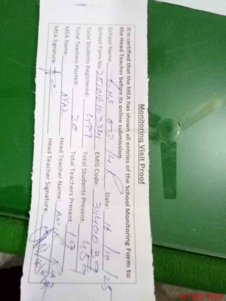 | Certified that this School was Inspected by the Undersigned MEA/DMO Today and the Information Stated Above is as Per Record. | |||||