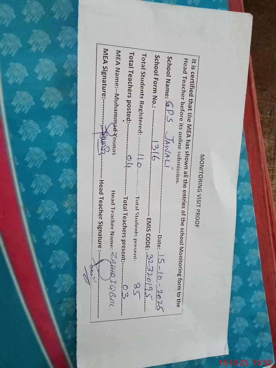 | EMIS Code: 32320195 | Name of School: GPS JAWALI | |||