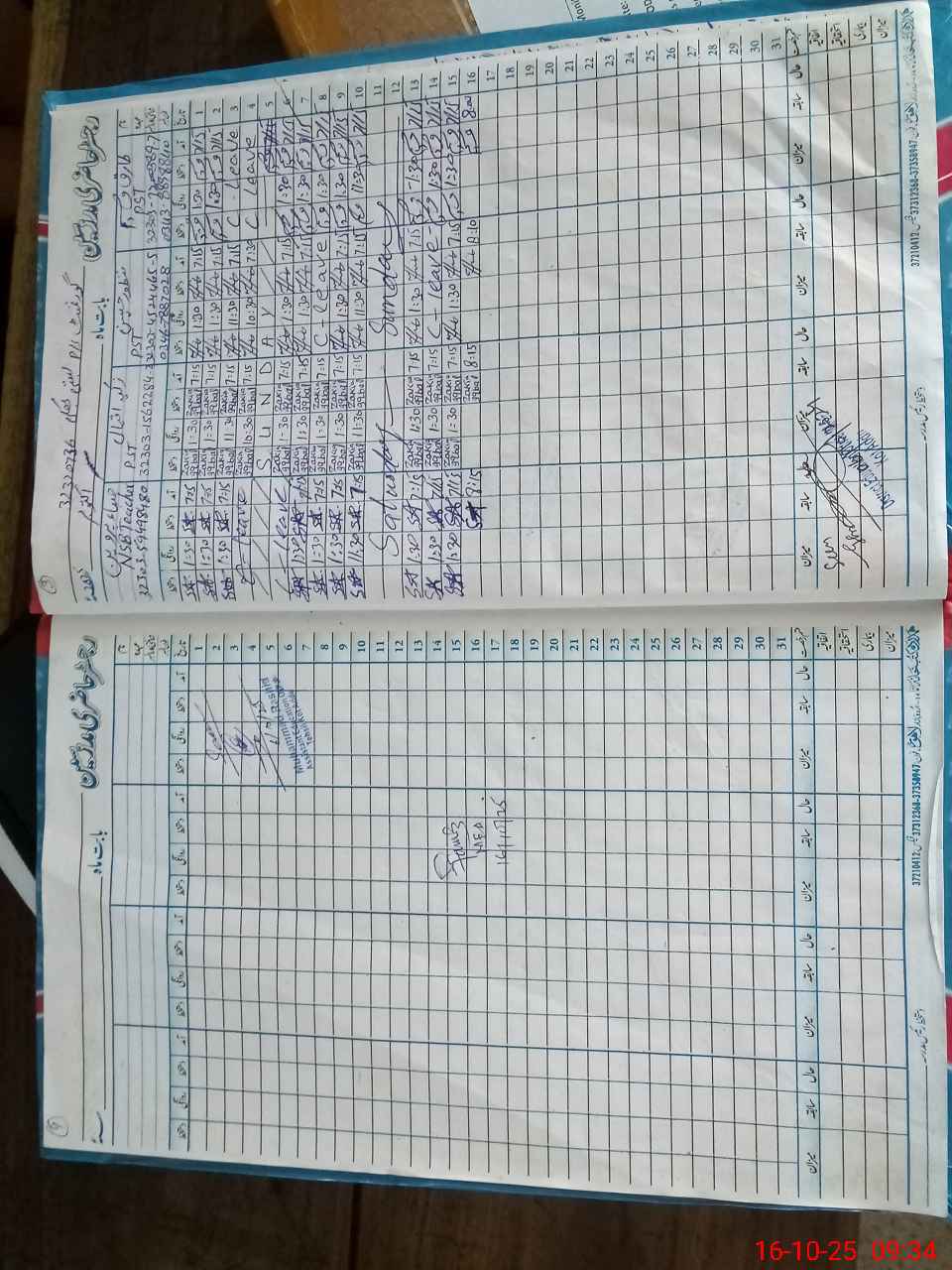 | CNIC | Full Name | Designation | R/C | Absence During Last Calender Month |