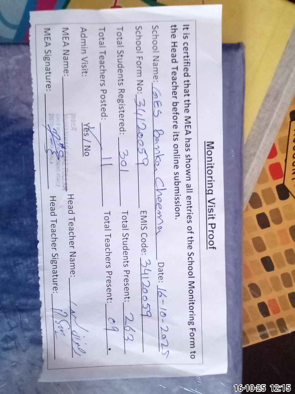 | EMIS Code: 34120059 | Name of School: GES BANKA CHEEMA | |||