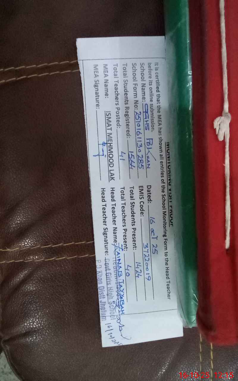 | EMIS Code: 37220019 | Name of School: GGHS PIND DADAN KHAN | |||