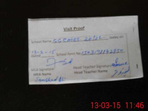 | School Visited by School Health & Nutrition Supervisor (No. of Visits) | 2 | Name1: | SHER AFGHAN | Name2: | |