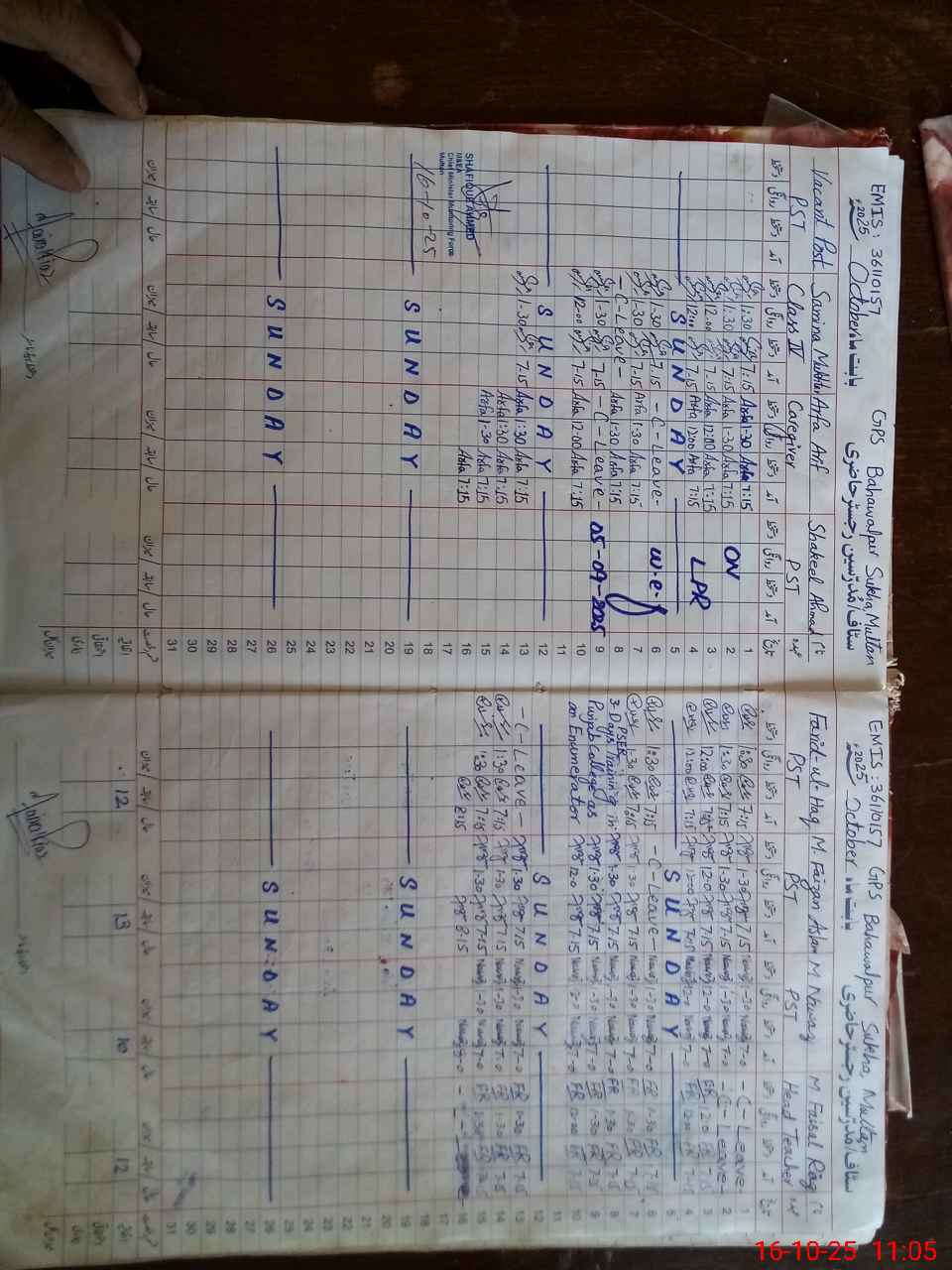 | CNIC | Full Name | Designation | R/C | Absence During Last Calender Month |
