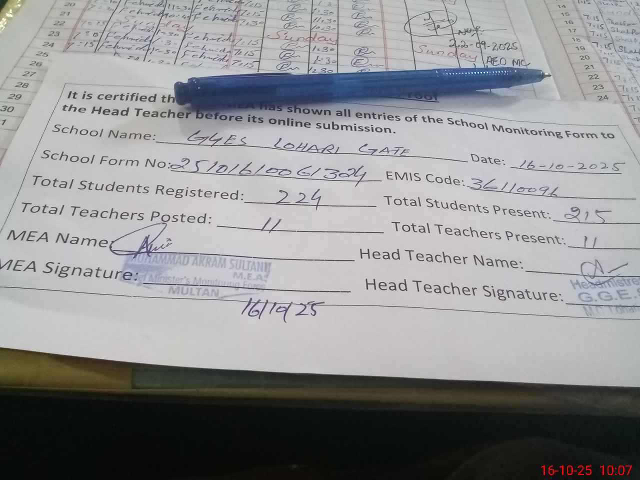 | Certified that this School was Inspected by the Undersigned MEA/DMO Today and the Information Stated Above is as Per Record. | |||||