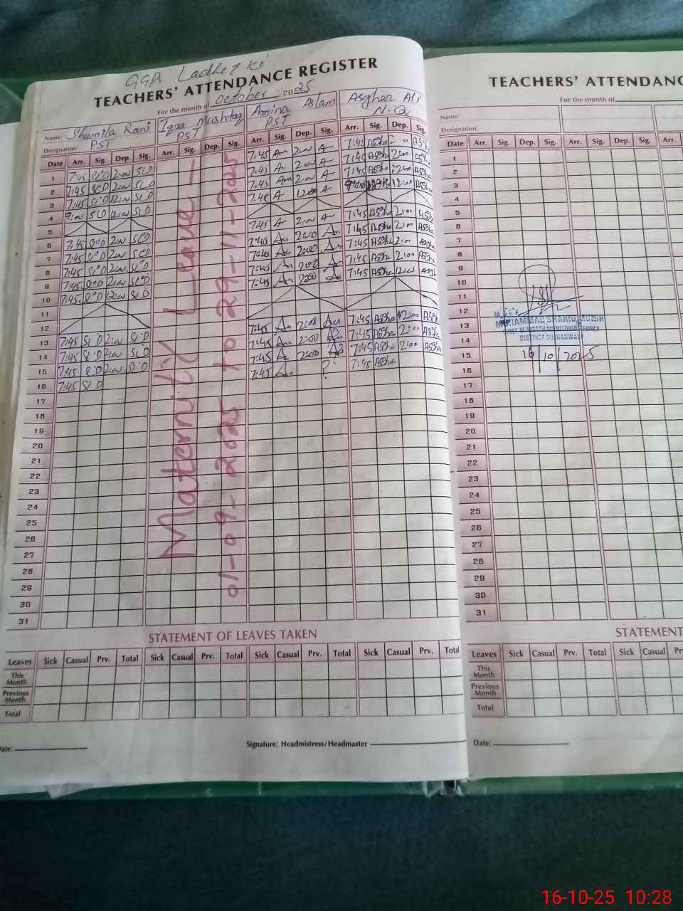 | 34**** | Iq**** Mu**** | PST | Regular | 0 | 0 | 0 | 0 | 0 | 0 | 0 | 0 | 0 | Maternity |