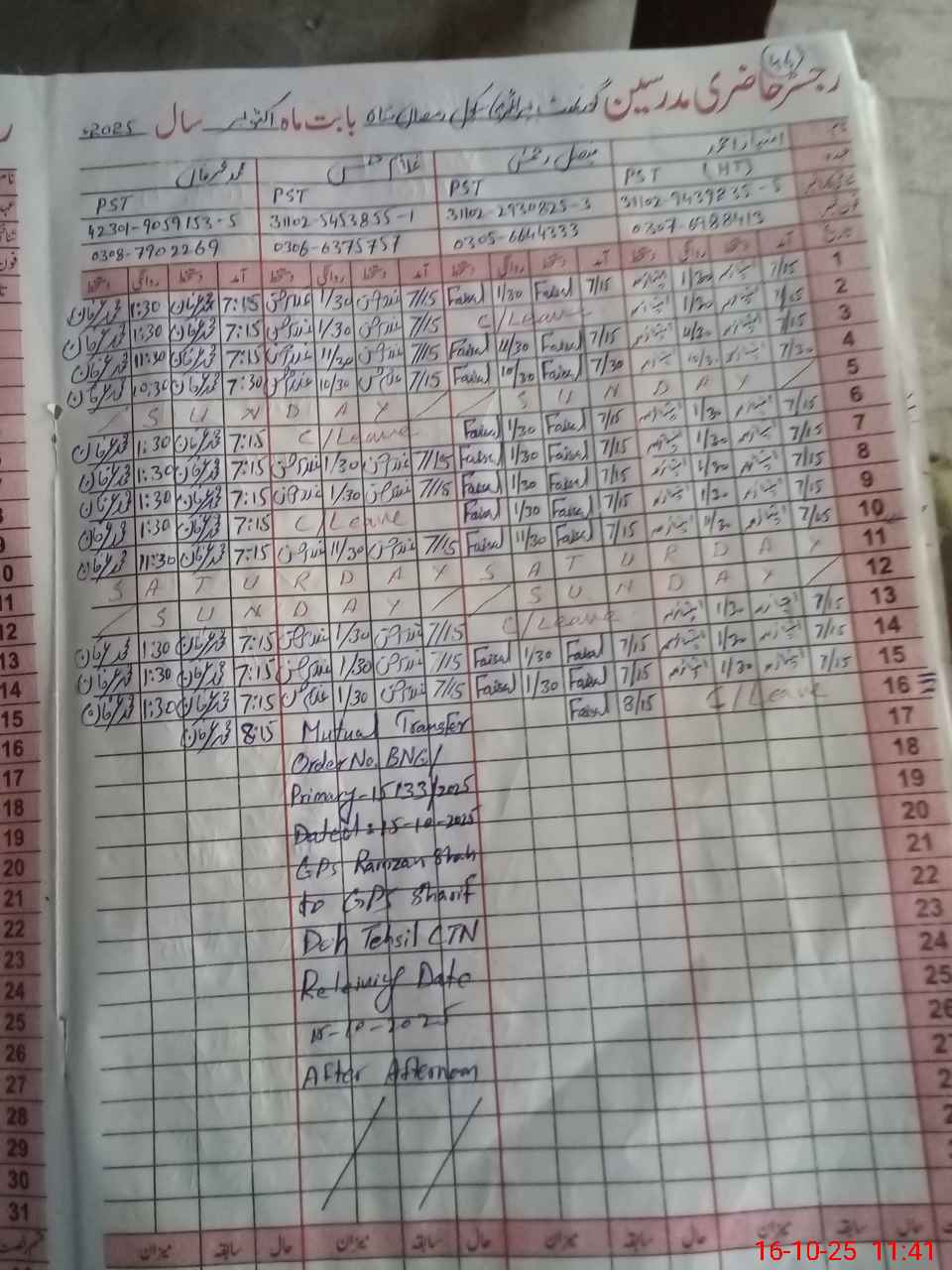 | Name: IM**** AH**** Designation: (School Headmaster's/Headmistress's) PST Phone/Cell Number: 03**** |