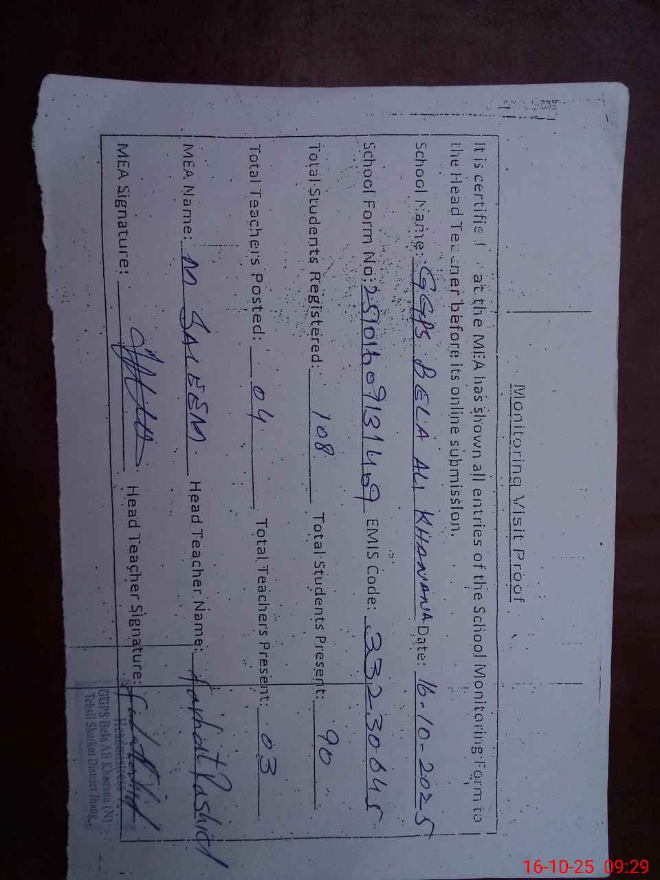 | EMIS Code: 33230645 | Name of School: GGPS BELA ALI KHANAN NORTH | |||