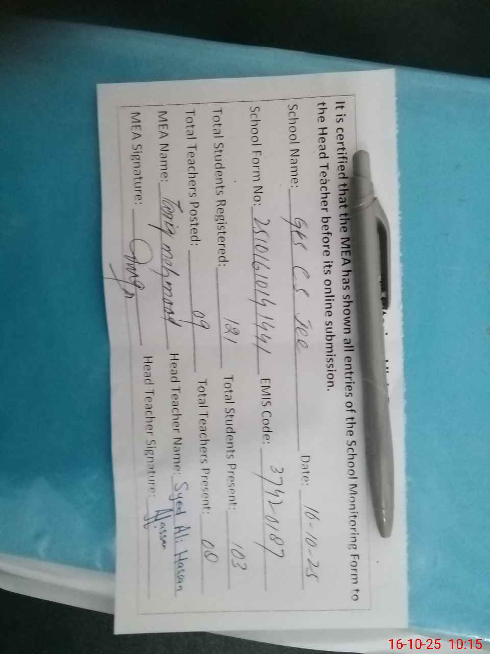 | EMIS Code: 37420187 | Name of School: GES CHAKKI SHEIKH JEE | |||
