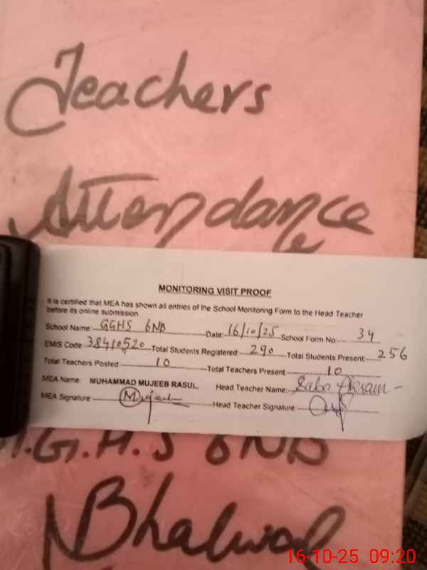 | EMIS Code: 38410520 | Name of School: GGHS CHAK NO.6 NB | |||
