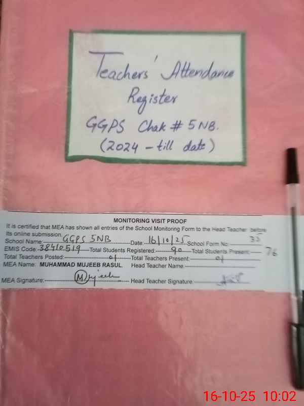 | EMIS Code: 38410519 | Name of School: GGPS CHAK NO.5 NB | |||