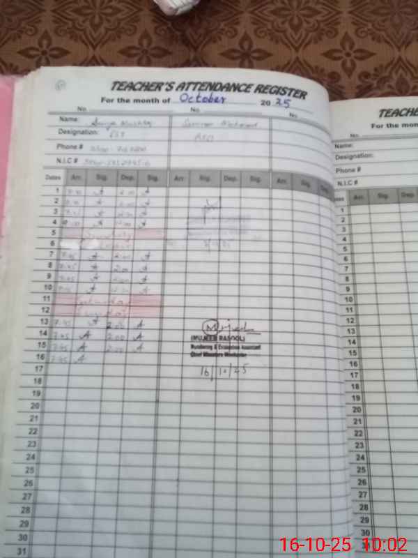 | Name: At**** Mu**** Designation: (School Headmaster's/Headmistress's) PST Phone/Cell Number: 03**** |