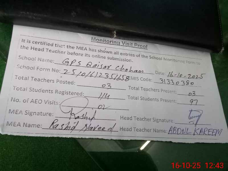 | EMIS Code: 31330380 | Name of School: GPS QAISAR CHOHAN | |||