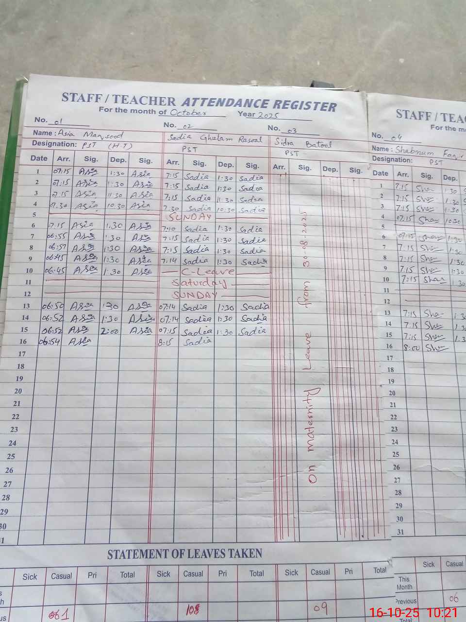 | 33**** | Si**** Ba**** | PST | Regular | 0 | 0 | 0 | 0 | 0 | 0 | 0 | 0 | 0 | Maternity |