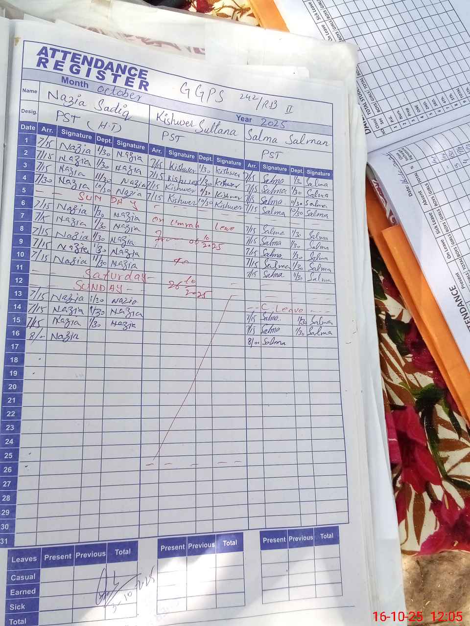 | Leave | Duty | Absent | Maternity | Medical | Ex- Pak |