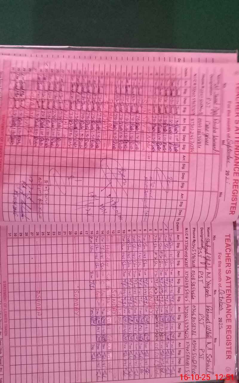 | Name: Sh**** Gh**** Designation: (School Headmaster's/Headmistress's) Headmaster Phone/Cell Number: 03**** |