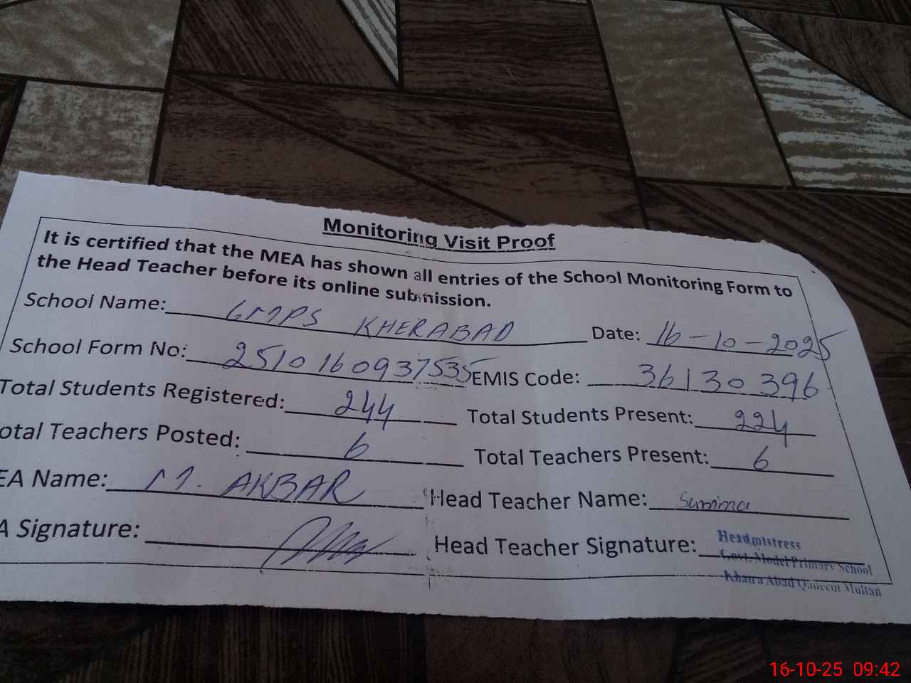 | EMIS Code: 36130396 | Name of School: GMPS KHERA QADEEM CHAH SYED WALA | |||