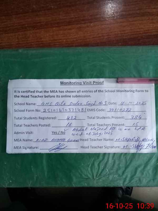 | EMIS Code: 34110272 | Name of School: GHS QILA DIDAR SINGH NO.3 | |||