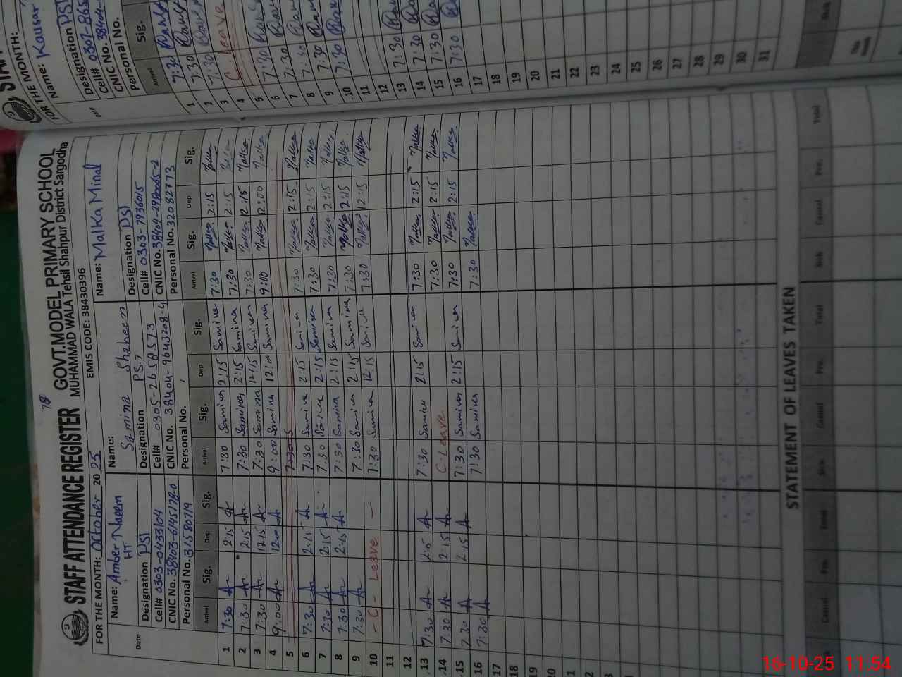| Name: AM**** NA**** Designation: (School Headmaster's/Headmistress's) PST Phone/Cell Number: 03**** |