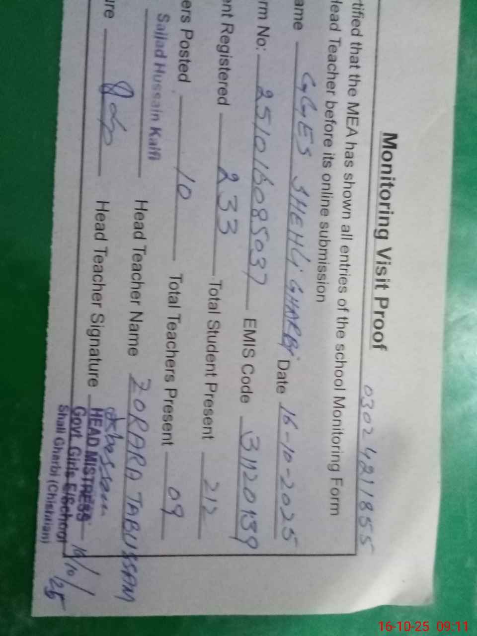 | EMIS Code: 31120139 | Name of School: GGES SHELI GHARBI | |||