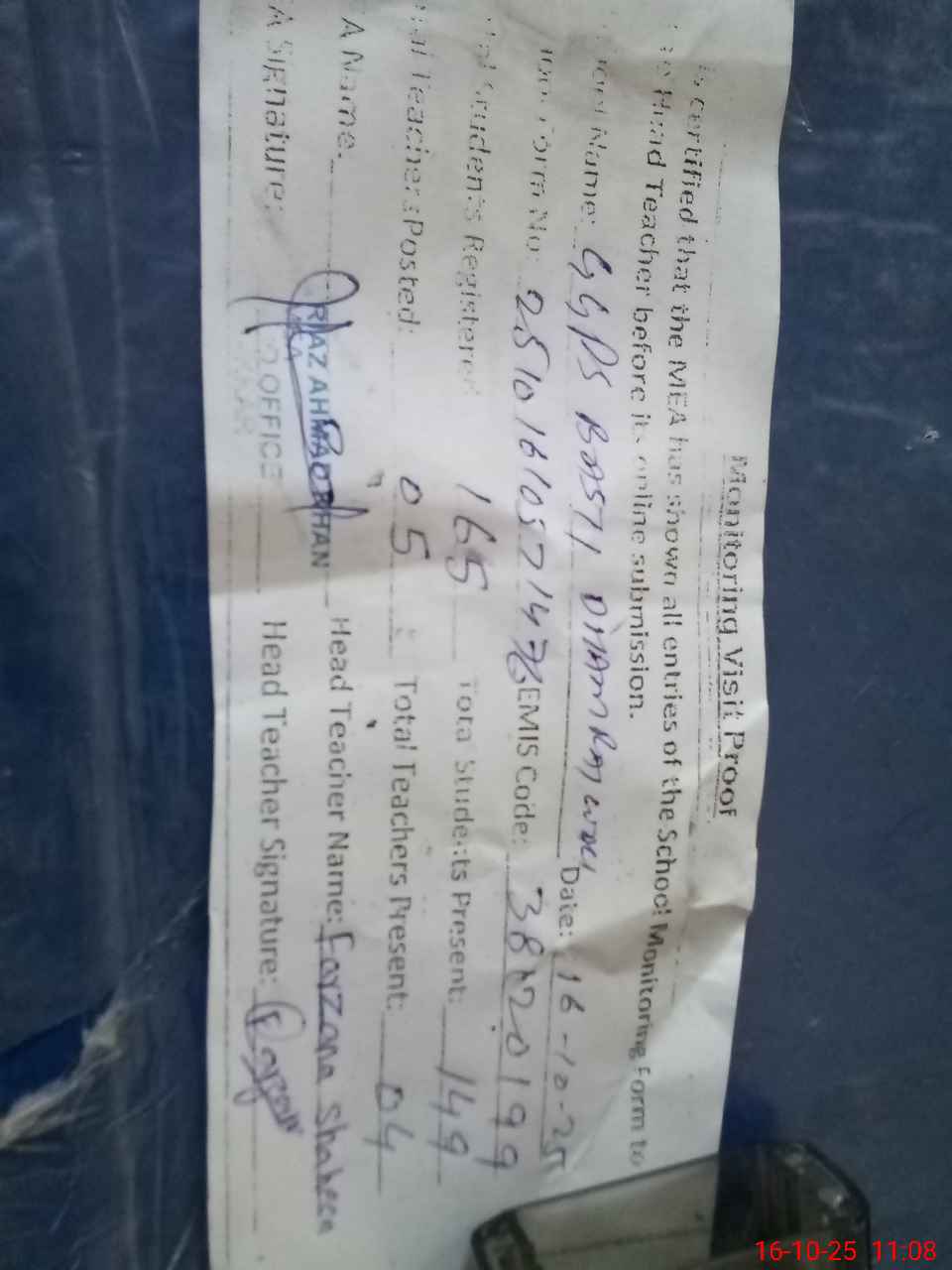 | Certified that this School was Inspected by the Undersigned MEA/DMO Today and the Information Stated Above is as Per Record. | |||||
