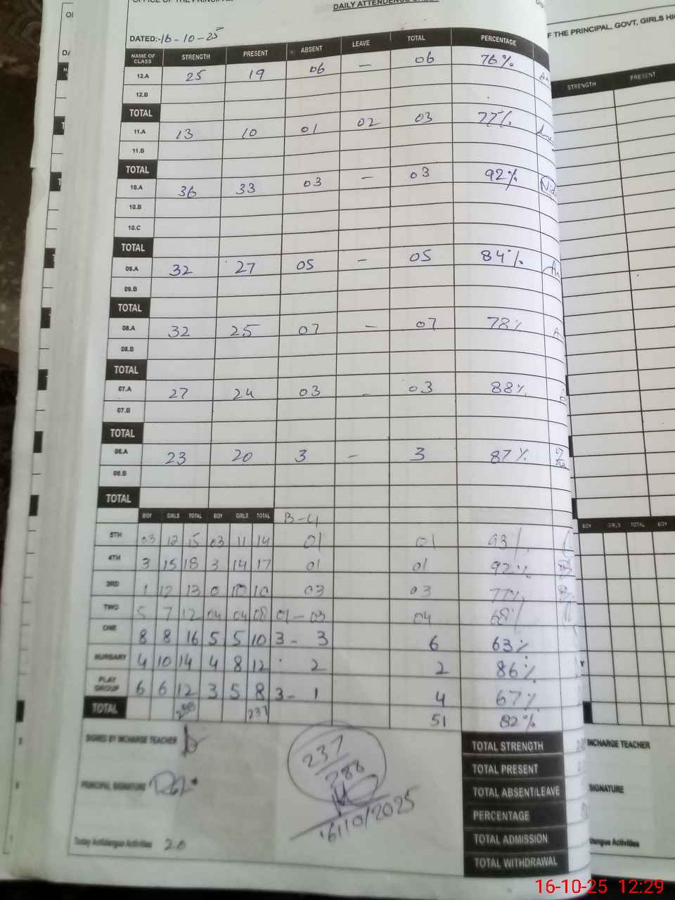 | No. of Students Present - Female | 5 | 0 | 8 | 5 | 4 | 10 | 14 | 11 | 20 | 24 | 25 | 27 | 33 | 10 | 19 | 215 |