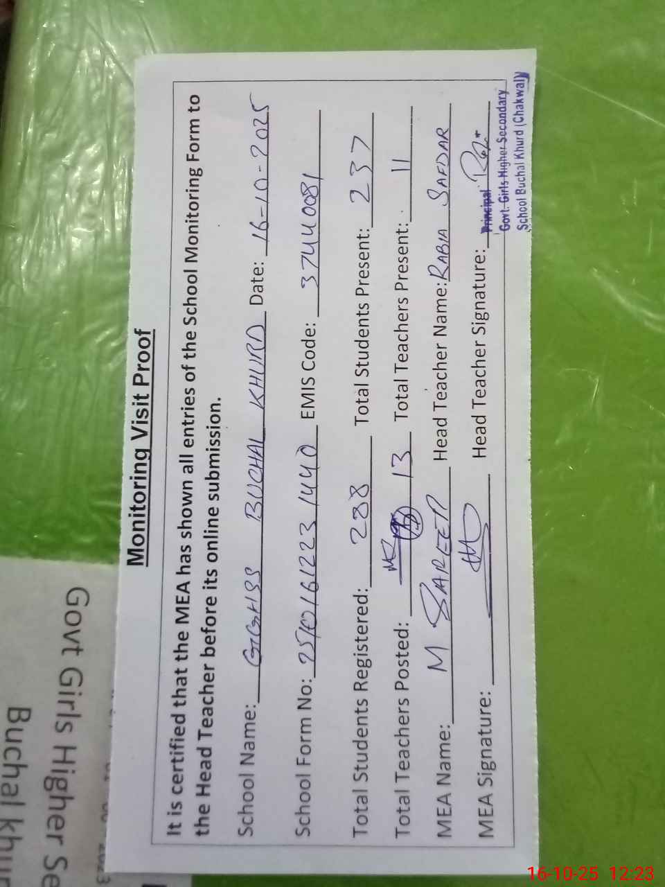 | EMIS Code: 37440081 | Name of School: GGHSS BUCHAL KHURD | |||