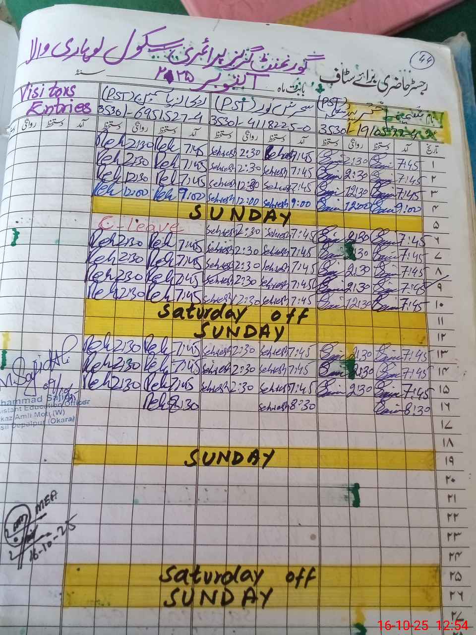 | Name: SH**** AK**** Designation: (School Headmaster's/Headmistress's) PST Phone/Cell Number: 03**** |