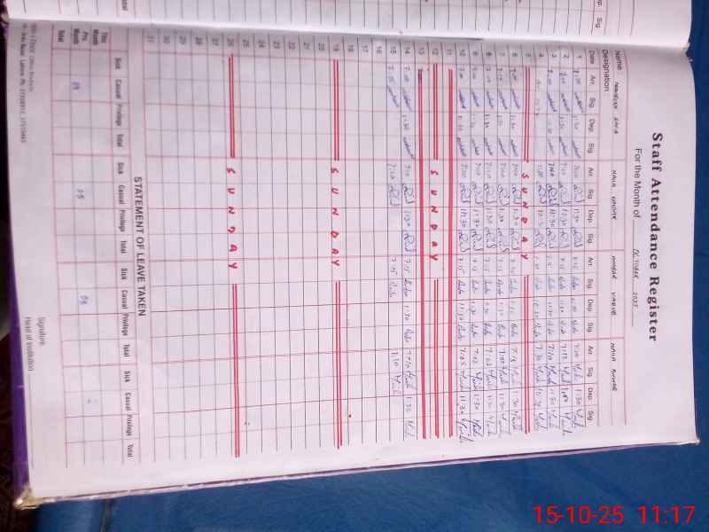 | CNIC | Full Name | Designation | R/C | Absence During Last Calender Month |