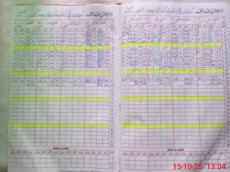 | CNIC | Full Name | Designation | R/C | Absence During Last Calender Month |