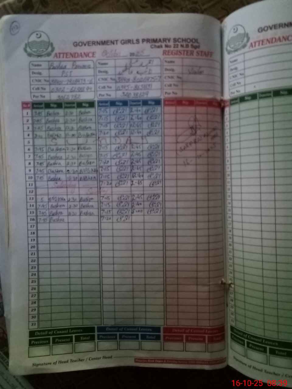 | Name: Sa**** Ni**** Designation: (School Headmaster's/Headmistress's) PST Phone/Cell Number: 03**** |