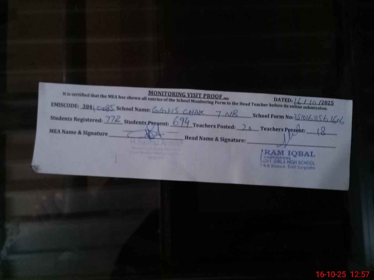 | EMIS Code: 38410085 | Name of School: GGHS CHAK NO.7 NB | |||