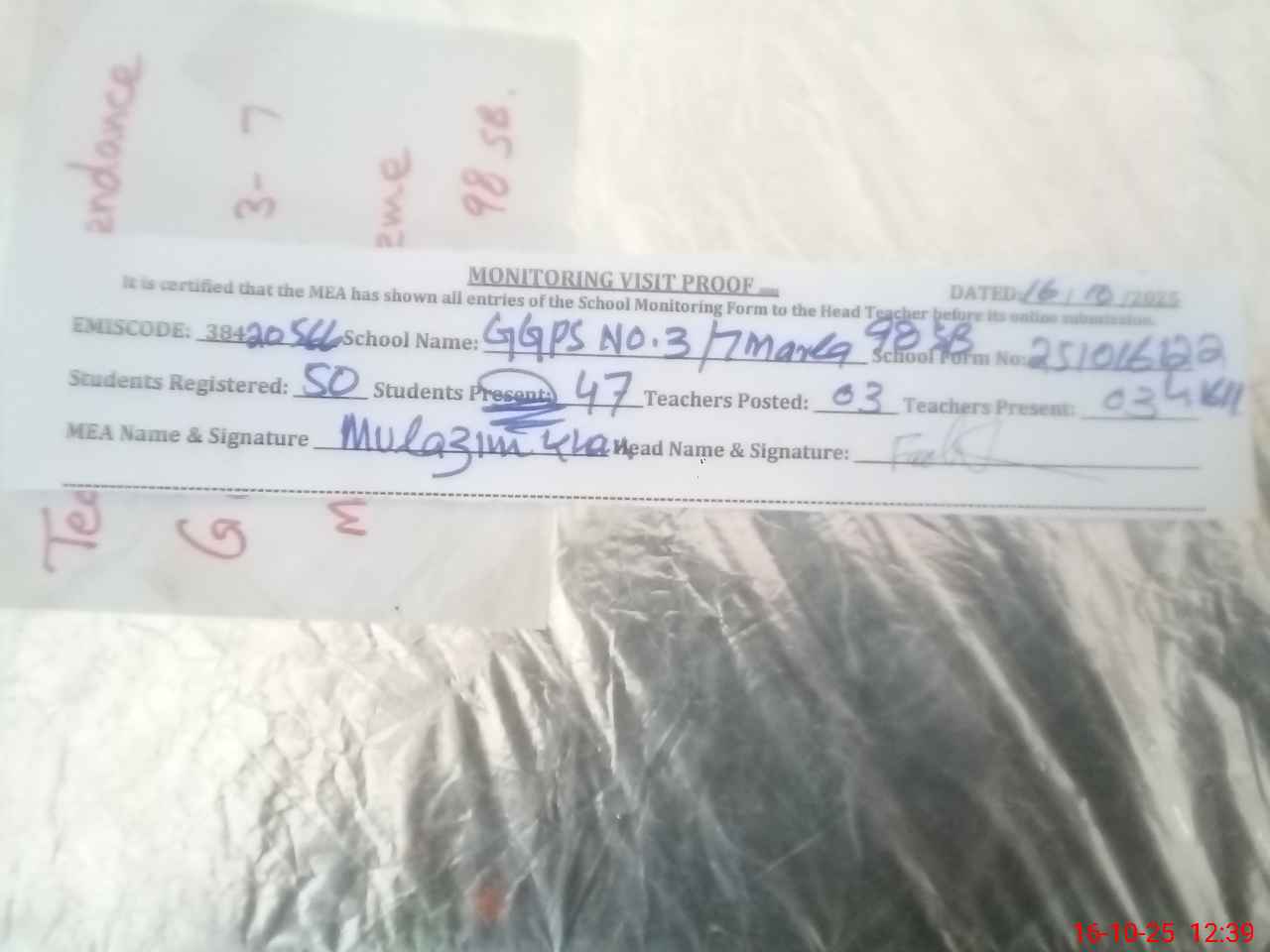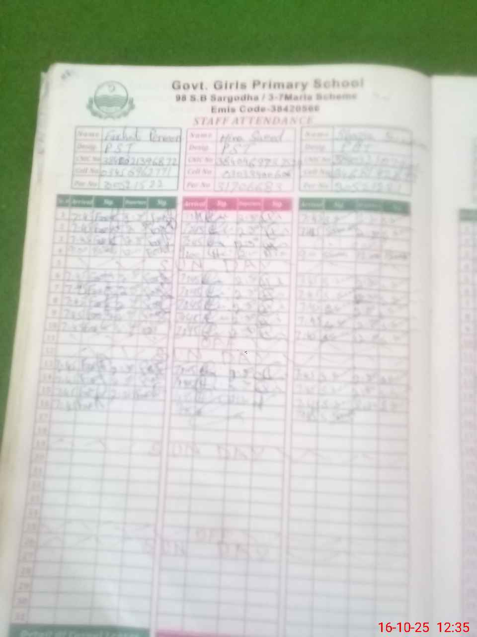 | EMIS Code: 38420566 | Name of School: GGPS NO.3 7-MARLA SCHEME CHAK NO.98 SB | |||