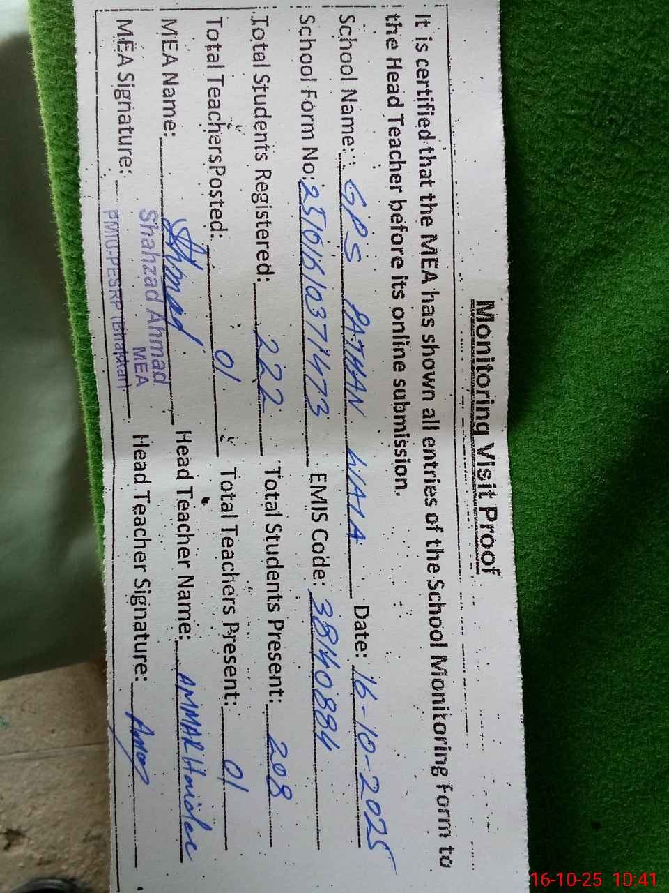 | EMIS Code: 38140884 | Name of School: GPS PATHAN WALA | |||
