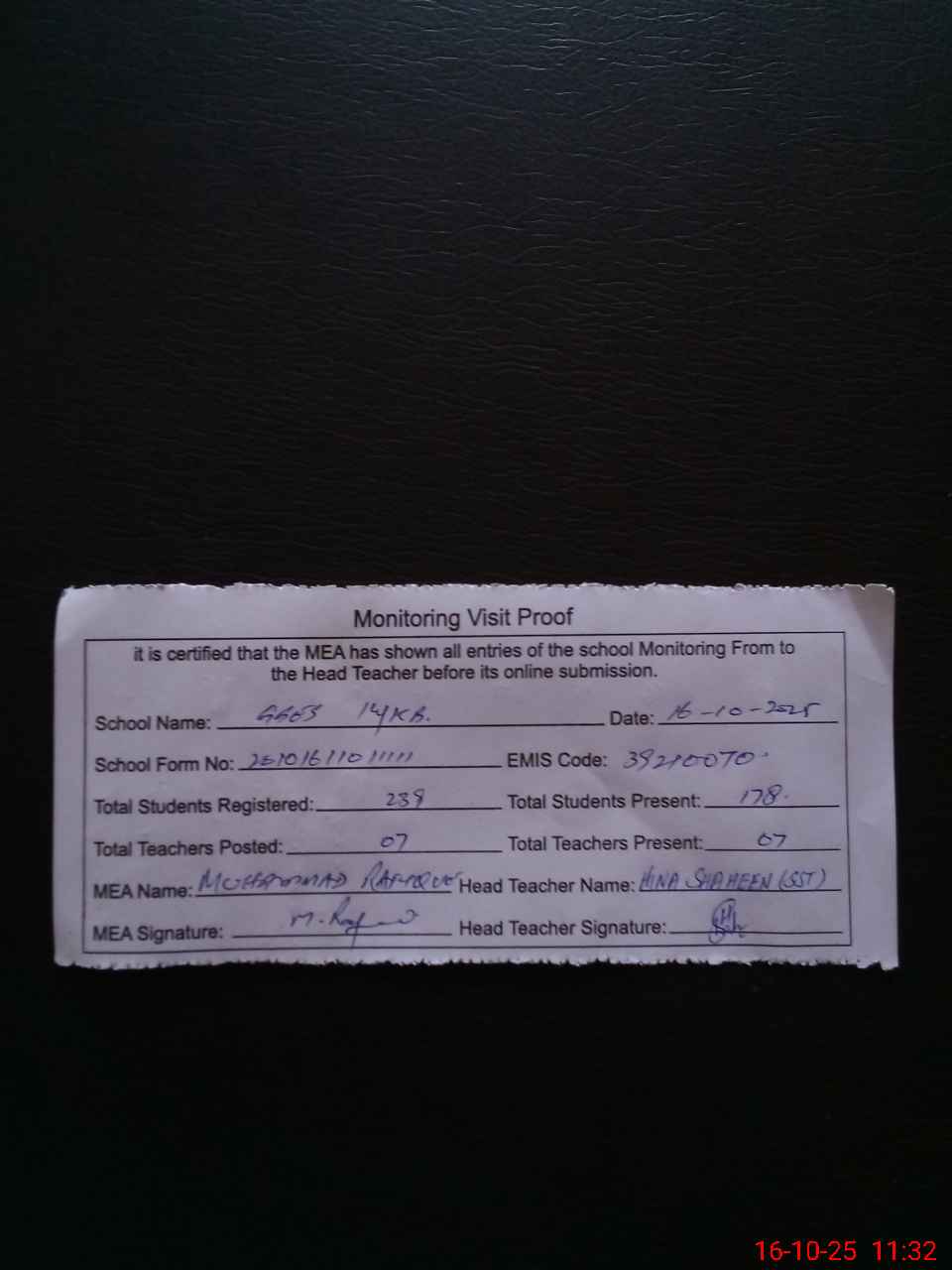 | Certified that this School was Inspected by the Undersigned MEA/DMO Today and the Information Stated Above is as Per Record. | |||||