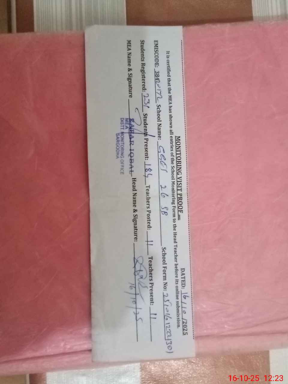| EMIS Code: 38420172 | Name of School: GGES CHAK NO.26 SB | |||