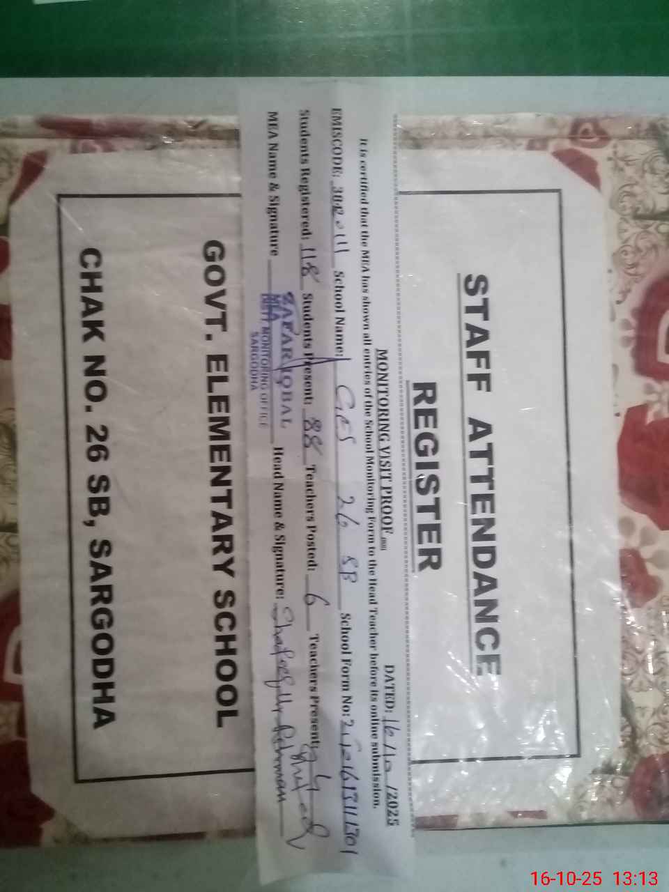 | EMIS Code: 38420111 | Name of School: GES CHAK NO.26 SB | |||